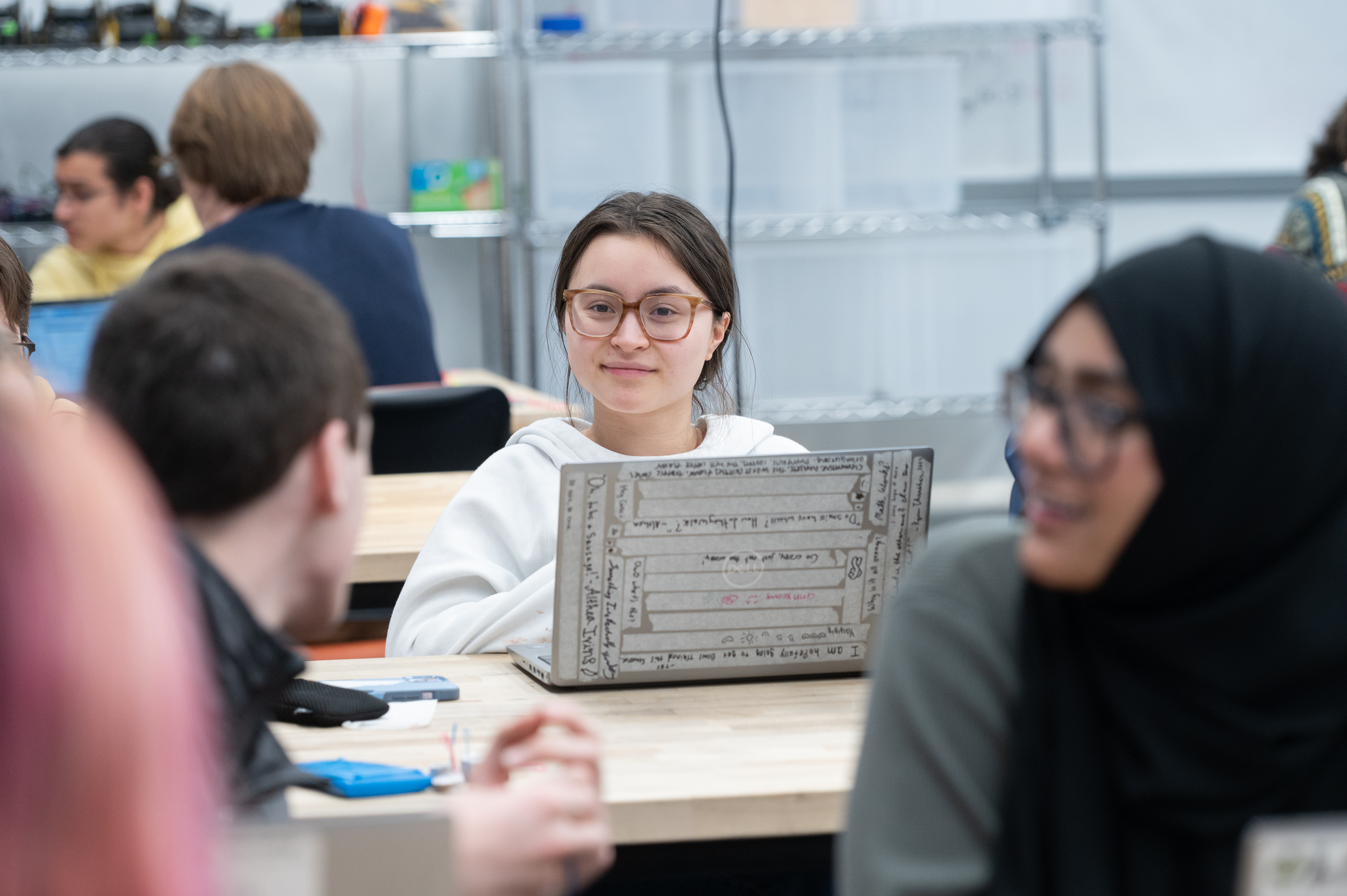 A student sits at a table during a recent Quantitative Engineering Analysis (QEA) class. Photo by Leise Jones (April 2025).