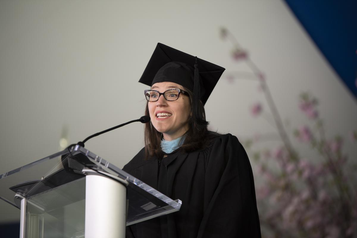 Emily Roper-Doten, Dean of Admission & Financial Aid, talks about patience, grace and trust when having difficult conversations, during her Inauguration address on May 5, 2022. Photo by Leise Jones.