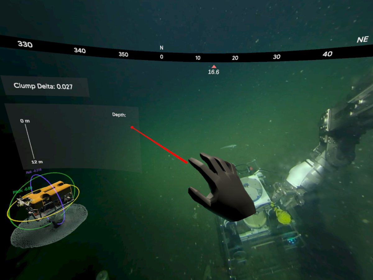 An image capture of the MBARI / Dassault Systemes Foundation SCOPE team's ROV VR display.